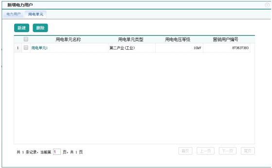 在用電單元標(biāo)簽頁,點(diǎn)擊新建可以創(chuàng)建這個(gè)用戶所屬的用電單元。