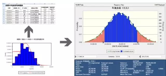 現(xiàn)金流分析:參照電站發(fā)電量的歷史數(shù)據(jù),運(yùn)用蒙特卡洛模擬預(yù)測(cè)現(xiàn)金流量的統(tǒng)計(jì)數(shù)據(jù)、波動(dòng)率與分布情況,從而評(píng)估收益風(fēng)險(xiǎn)。