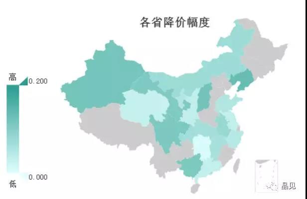 從下面的圖很明顯可以看出來,直購電降價幅度大的省份都是新能源和水電非常豐富。