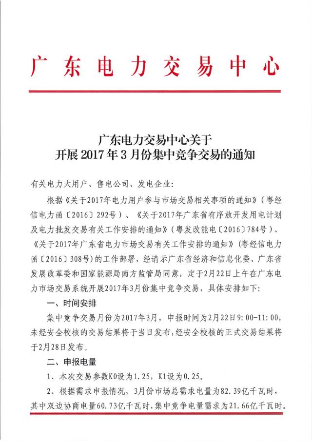 廣東省電力交易中心剛剛發(fā)布關(guān)于2月22日早上9:00-11:00開展2017年三月份集中競(jìng)價(jià)交易的通知,我們來劃劃重點(diǎn)吧: