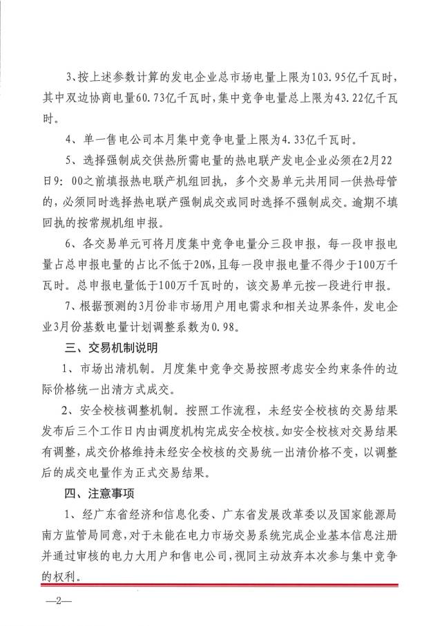 發(fā)電企業(yè)3月份基數(shù)電量計(jì)劃調(diào)整系數(shù)為0.98。
