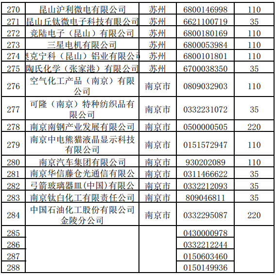 2017年11、12月江蘇競價交易用戶準入清單(附名單)