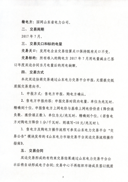 山東7月電力直接交易(雙邊協(xié)商)27日展開