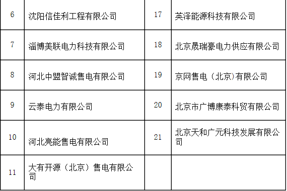 冀北電力交易中心有限公司對(duì)各售電公司提出的市場(chǎng)準(zhǔn)入申請(qǐng)進(jìn)行了完整性核驗(yàn),現(xiàn)將企業(yè)名單及基本情況予以公示。