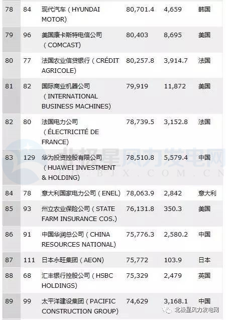 《財富》雜志昨日發(fā)布了2017年世界500強排行榜?!敦敻弧肥澜?00強是衡量全球大型公司的最著名、最權(quán)威榜單,是反映世界知名企業(yè)實力、規(guī)模和國際影響力的重要指標。共有115家中國企業(yè)上榜。涉及風電業(yè)務(wù)的企業(yè)有