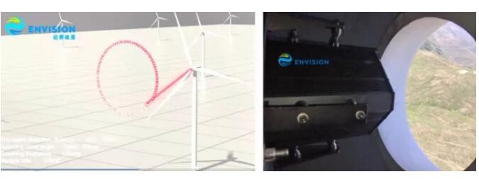 遠(yuǎn)景的研發(fā)專家們意識(shí)到智能風(fēng)機(jī)不應(yīng)僅僅是被動(dòng)地感知風(fēng),只有提前預(yù)知未來的風(fēng)況,風(fēng)機(jī)才能夠?qū)崿F(xiàn)前饋控制,提前制訂偏航、變槳策略,在風(fēng)來臨之前以最佳的姿態(tài)迎接風(fēng),這樣才能實(shí)現(xiàn)風(fēng)能的最大捕獲并在極限風(fēng)條件下采取有效的保護(hù)策略,從而有效提升發(fā)電量,并降低風(fēng)機(jī)載荷。遠(yuǎn)景自主研發(fā)的激光雷達(dá)完全為風(fēng)機(jī)量身定制,50個(gè)以上的有效測點(diǎn)實(shí)時(shí)獲取風(fēng)速、風(fēng)向、湍流、剪切等來流信息,輪轂中心的布置方案徹底擺脫了葉輪轉(zhuǎn)動(dòng)對(duì)附近空氣流動(dòng)造成的干擾,并且能夠主動(dòng)校準(zhǔn),機(jī)艙與風(fēng)向夾角始終保證準(zhǔn)確,避免了人工校準(zhǔn)造成的誤差。
