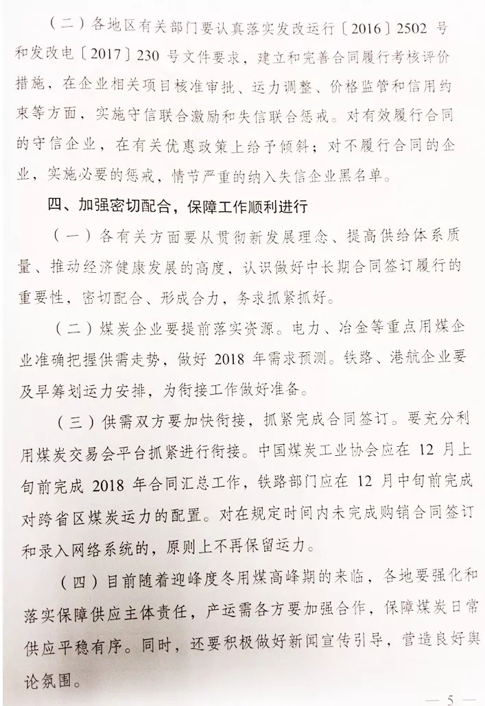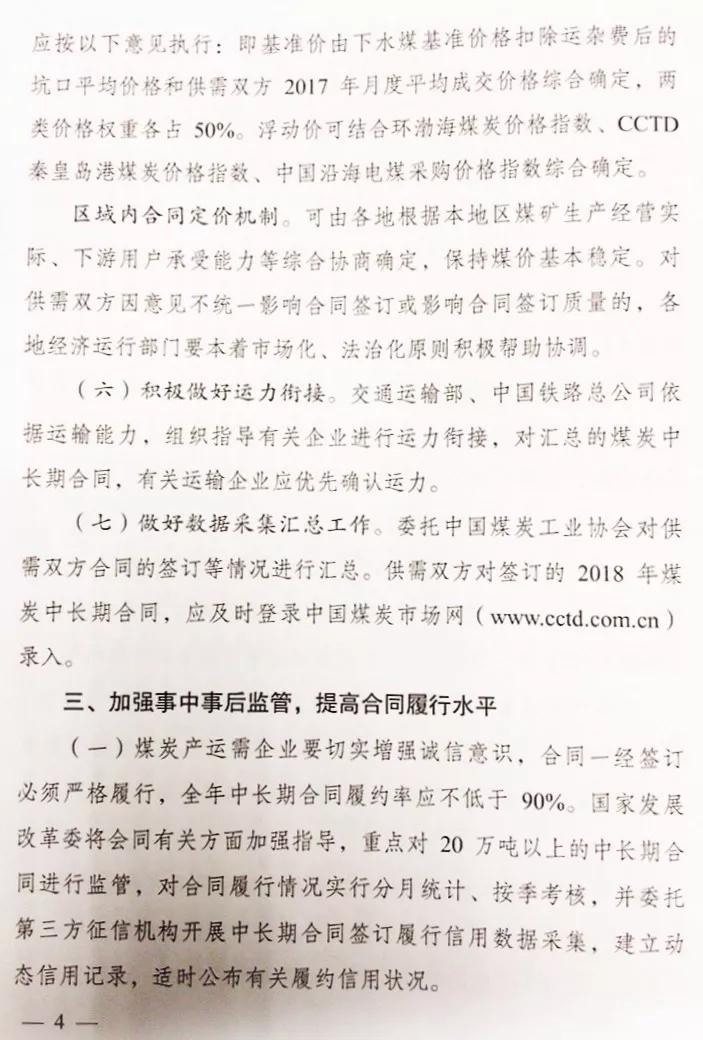 近日,國家發(fā)改委印發(fā)了《國家發(fā)展改革委辦公廳關于推進2018年煤炭中長期合同簽訂履行工作的通知》,文件要求充分認識煤炭中長期合同的重要作用,進一步創(chuàng)新方式推動建立長期穩(wěn)定合作關系,包括:支持企業(yè)自主簽