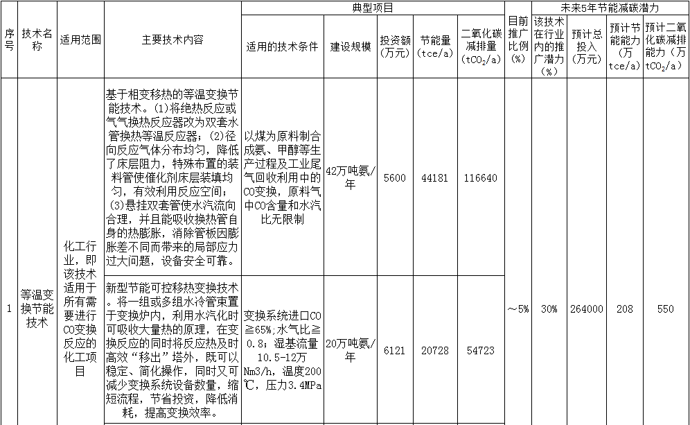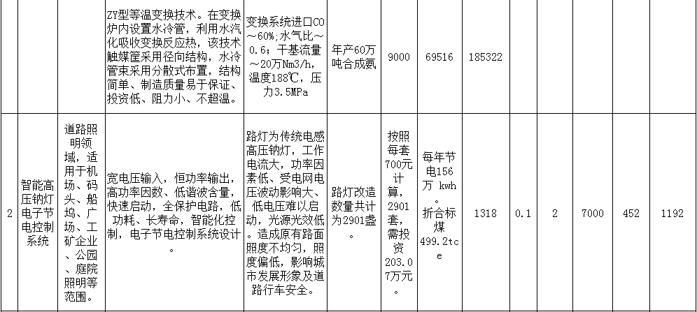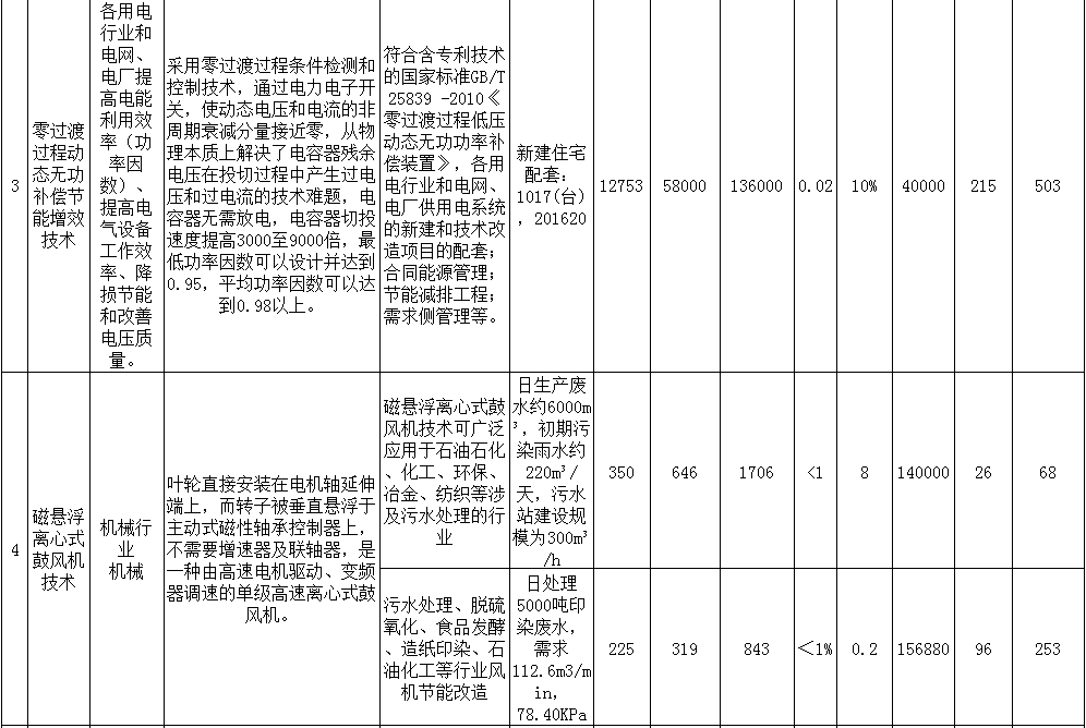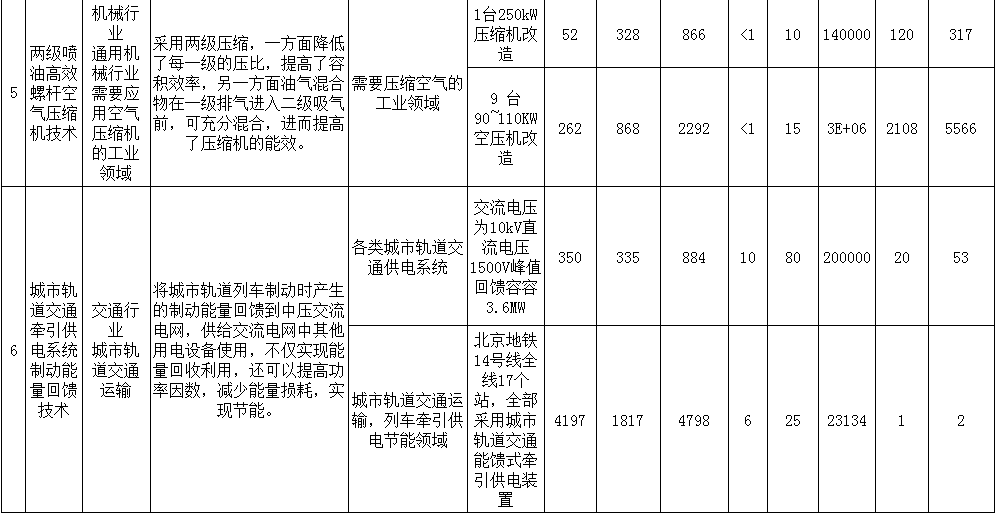 節(jié)能技術(shù)匯總表(征求意見稿)