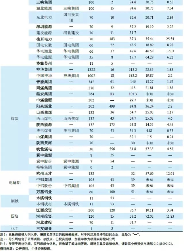 第一批關(guān)停、停建、緩建項(xiàng)目涉及發(fā)債企業(yè)