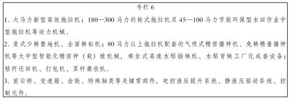 7.農(nóng)機(jī)裝備。以滿足現(xiàn)代農(nóng)業(yè)發(fā)展需求,增加品種供給,提升產(chǎn)品檔次和層級(jí)為目標(biāo),加快農(nóng)機(jī)裝備向自動(dòng)化、信息化、智能化方向發(fā)展,促進(jìn)骨干企業(yè)規(guī)?;⒚麅?yōu)產(chǎn)品系列化、配套協(xié)作體系化,構(gòu)建具有核心技術(shù)的產(chǎn)業(yè)集群,打造中國北方現(xiàn)代農(nóng)機(jī)裝備制造基地。動(dòng)力機(jī)械,以約翰˙迪爾(佳木斯)公司、凱斯紐荷蘭(哈爾濱)公司、一拖(黑龍江)公司、愛科(大慶)公司、雷沃北大荒公司、佳木斯驥馳公司等骨干企業(yè)為依托,發(fā)展180—300馬力輪式拖拉機(jī)、45—100馬力節(jié)能環(huán)保型拖拉機(jī)等動(dòng)力機(jī)械,打造哈爾濱、大慶、齊齊哈爾農(nóng)機(jī)裝備制造基地。非動(dòng)力機(jī)械,以常發(fā)佳聯(lián)公司、金億(大慶)公司等為重點(diǎn),發(fā)展麥稻豆通用聯(lián)合收獲機(jī)、自走式玉米聯(lián)合收獲機(jī)等收獲機(jī)械;以格蘭(大慶)公司、勃農(nóng)興達(dá)公司、融拓北方公司等為重點(diǎn),發(fā)展80馬力以上拖拉機(jī)配套的氣吸式精密播種機(jī)、免耕精量播種機(jī)等大中型智能化精密種(栽)植機(jī)械,以及乘坐式高速水稻插秧機(jī)、水稻育秧工廠化成套設(shè)備;以凱斯公司、龍牧公司、億龍公司等為重點(diǎn),發(fā)展秸稈還田機(jī)、打包機(jī)、莖桿兼收機(jī);以沃爾公司、眾榮公司為重點(diǎn),發(fā)展經(jīng)濟(jì)作物和棚室機(jī)械。打造佳木斯、七臺(tái)河農(nóng)機(jī)裝備制造基地。功能部件,以大馬力新型高效拖拉機(jī)為重點(diǎn),提升發(fā)動(dòng)機(jī)、傳動(dòng)系統(tǒng)、控制系統(tǒng)的省內(nèi)配套能力;支持骨干企業(yè)發(fā)展前后橋、變速箱、齒輪、特殊軸類等關(guān)鍵零部件,發(fā)展電控液壓提升系統(tǒng)、靜液壓驅(qū)動(dòng)系統(tǒng)、控制元件。