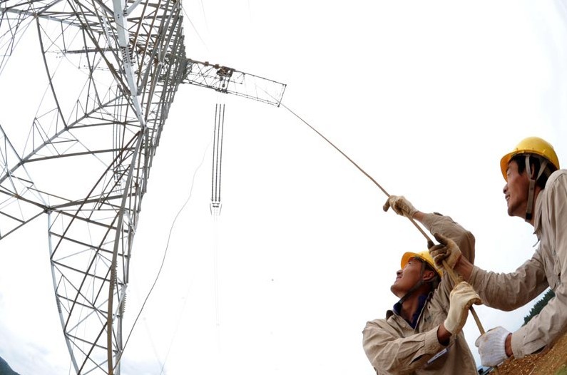 2013年9月26日,在貴州省銅仁市松桃縣,江蘇省送變電工程公司工作人員在±800千伏特高壓工程黔5標(biāo)段進(jìn)行架線施工。溪洛渡左岸至浙江金華±800千伏特高壓直流輸電工程是國家電網(wǎng)公司投資建設(shè)的又一