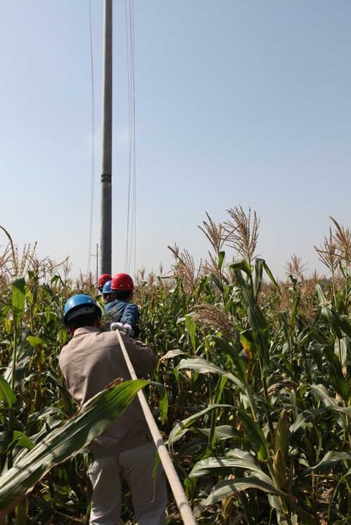10月10日,工人們正在野外架設電力線路。“金九月,銀十月”,當前,正是電網改造施工的黃金季節(jié),安徽電力亳州渦陽供電公司抓住當前天氣晴好,有利電網工程建設的良好時機,及時組織工程技術人員對城鄉(xiāng)薄弱電網進行升級改造,全力保障“十八大”期間電網安全可靠運行。