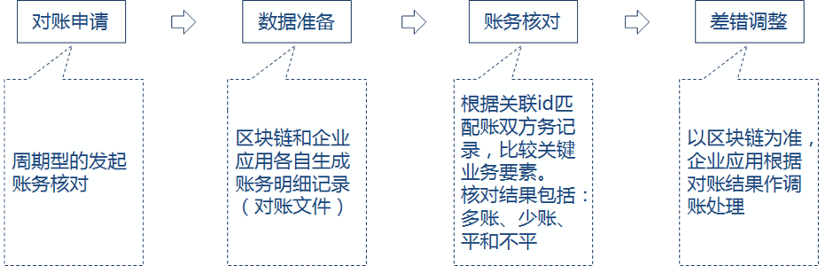2. 區(qū)塊鏈平臺(tái)和企業(yè)應(yīng)用都要保證生成的對(duì)賬文件明細(xì)記錄的連續(xù)性