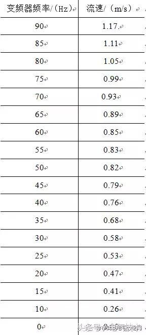 表5 不同變頻器頻率下流速測(cè)量數(shù)據(jù)