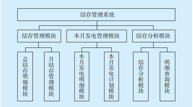 結(jié)存管理系統(tǒng)主要包括結(jié)存管理、結(jié)存分析以及本月發(fā)電管理3部分,系統(tǒng)結(jié)構(gòu)如