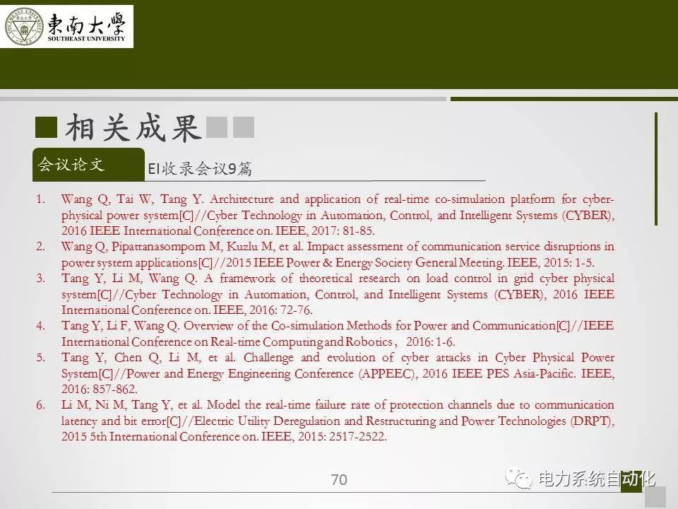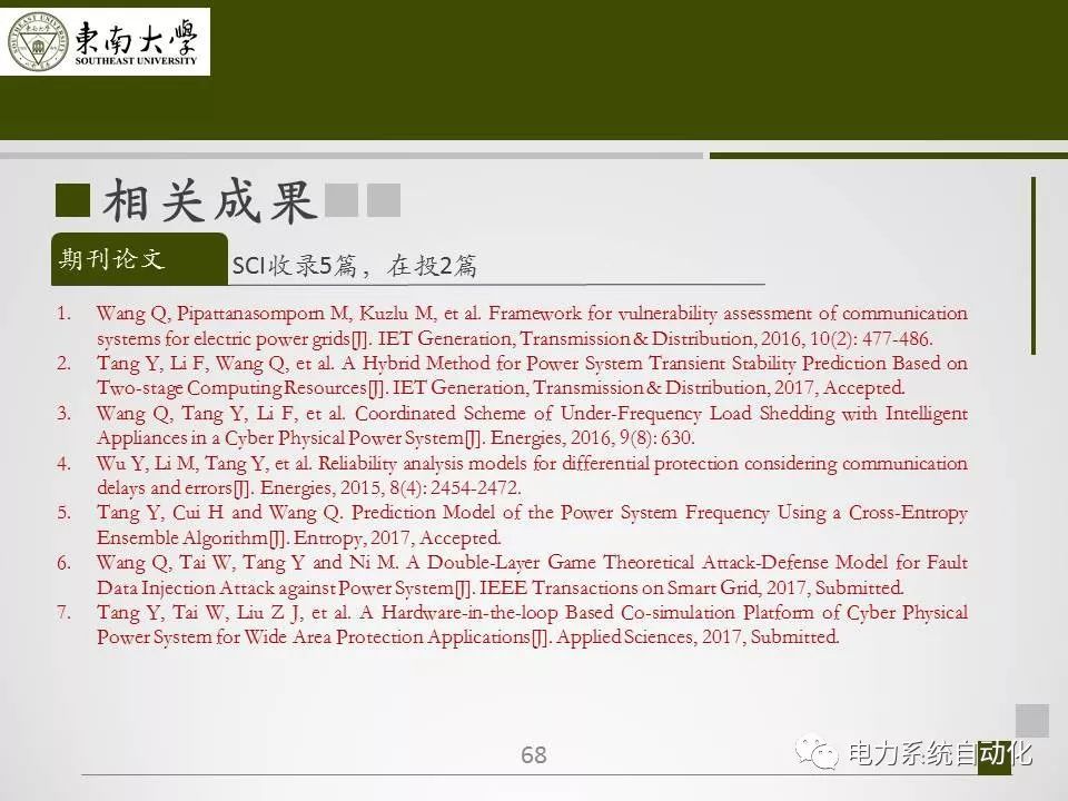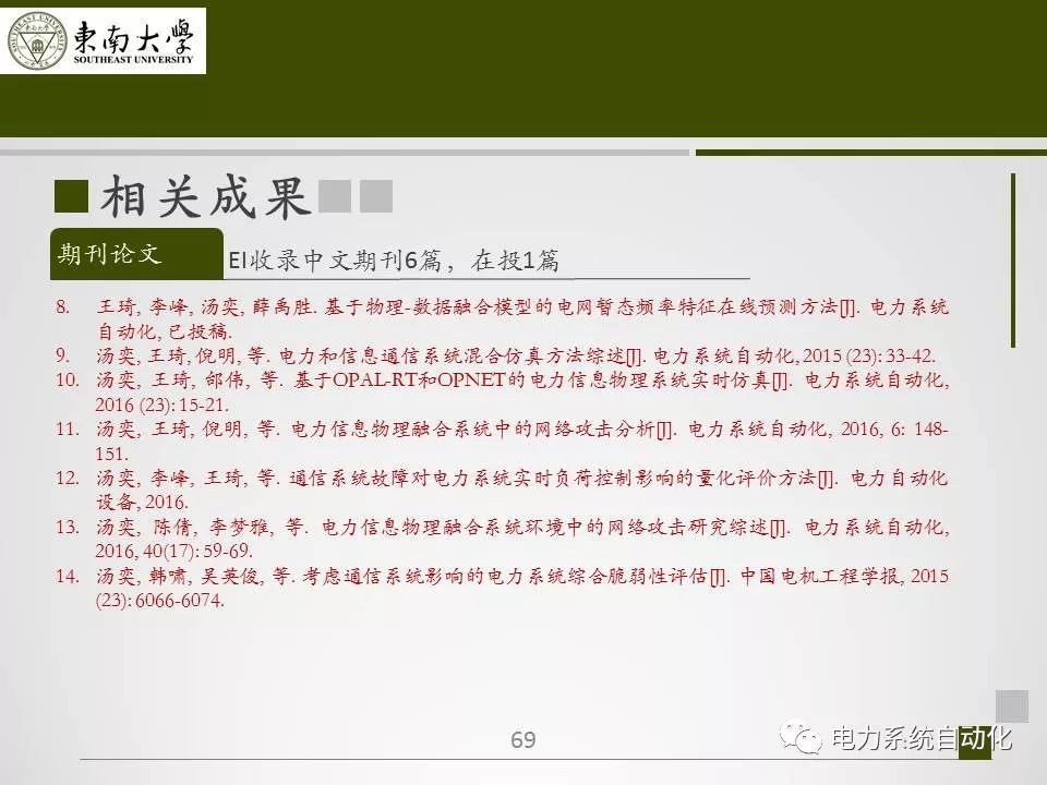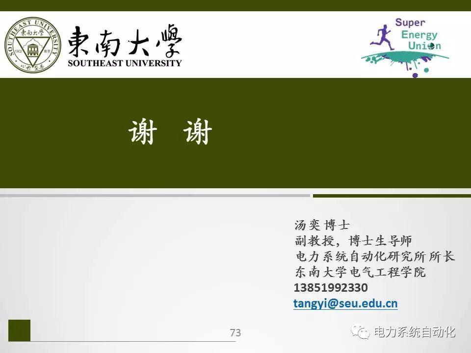 湯奕,博士,東南大學副教授,博士生導師,電力系統(tǒng)自動化研究所所長。主要從事電網(wǎng)信息物理系統(tǒng)、電力系統(tǒng)穩(wěn)定分析與控制等領域的研究。承擔了國家自然科學基金、國家重點研發(fā)計劃、國際合作項目、國家科技支撐計劃、國家電網(wǎng)及省級電網(wǎng)公司科技項目等60余項,發(fā)表SCI/EI檢索論文100余篇,授權國家發(fā)明專利25項,受理60余項,累計科研經(jīng)費近三千萬。