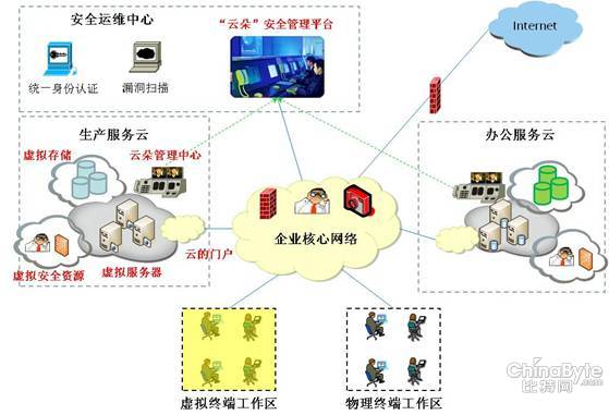 云朵方案的優(yōu)點(diǎn)是明顯的:一朵云內(nèi)的業(yè)務(wù)系統(tǒng)安全需求是相近的、用戶是相同的,安全隔離的需求大大降低了,這樣就解決了不同業(yè)務(wù)系統(tǒng)在一個云內(nèi)安全隔離的安全難題,在云朵之間的網(wǎng)絡(luò)是“物理”可見的,傳統(tǒng)的安全邊界思路完全適用;當(dāng)然,不同云朵可以采用不同的虛擬化操作系統(tǒng),減少對一個廠家的過度依賴(桌面操作系統(tǒng)對微軟的依賴是很多CIO 頭痛的難題);最后,若一朵云出現(xiàn)問題,也不會影響其他云朵內(nèi)的業(yè)務(wù)系統(tǒng)。