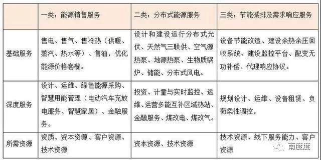 “能源服務(wù)”,根據(jù)《能源詞典》,是指通過能源的使用為消費者提供的服務(wù)。按照專業(yè)關(guān)聯(lián)的緊密程度和業(yè)務(wù)發(fā)展模式的相似程度,能源服務(wù)可歸納為能源銷售服務(wù)、分布式能源服務(wù)、節(jié)能減排服務(wù)及需求響應(yīng)服務(wù)等三類。