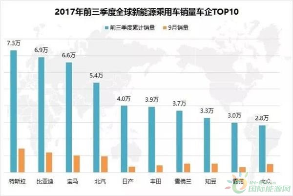 2017年9月,比亞迪的銷量?jī)H次于特斯拉成全球第二大新能源汽車品牌。