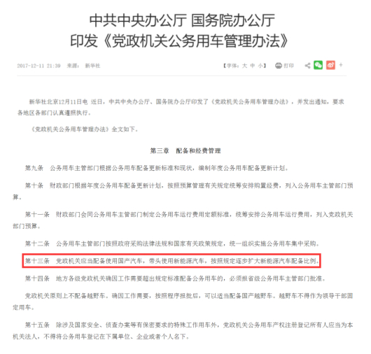 其實(shí),早在2016年部署“十三五”節(jié)約能源資源工作時,提出更新公務(wù)用車中新能源汽車的比例要達(dá)到50%以上。如今普及到全國,也是一件水到渠成的事情。